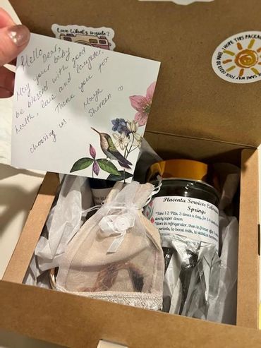 Our most popular package! This comes with placenta pills, a 4oz tincture, a 4oz healing salve balm for use on you or your baby, a placenta print with baby's name, a postpartum bath bomb or flavored capsules, and an umbilical cord keepsake!